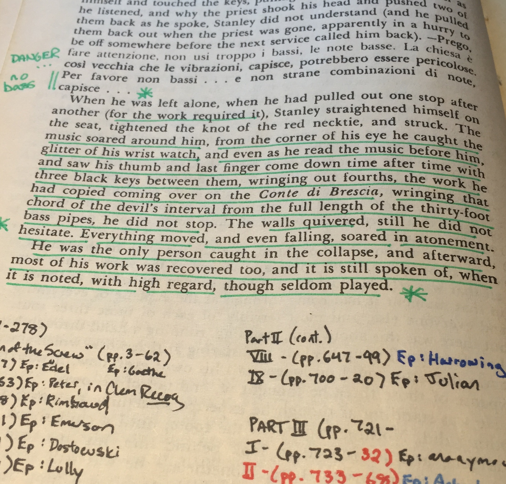 The Recognitions is an explicitly daunting reading task. It is not just a long novel. It is—much like Umberto Eco’s Foucault’s Pendulum (1988, 1989)—a kind of overloaded “information” novel, swelling at the seams with data pertaining to religious history, theology, pagan rituals, literary history, cultural idiosyncracies of 1950s New Yorkers and Parisians (of a narrow demographic), painting, restoration, psychoanalysis, music and musicology, and much more. The novel revels in obscure and arcane knowledge. On top of that, The Recognitions aims to achieve a level of conversational and interpersonal exactness that makes the simple act of following dialogue in a work of fiction especially difficult. Indeed, Gaddis is such a master at crafting dialogue that he can set an entire room or house of recurring characters (major and minor) chatting and have us (his readers) leap from this corner to that, from this room to that, from this topic to that, from center to periphery, leaving every conversation fragmented, sharp, incomplete, yet rich in social satire, political incisiveness, and verbal cleverness. And, of course, all of this dialogue is arranged among mountain ranges of narratorial paragraphs (with their own cliffs, climbs, valleys, and seemingly impenetrable rock faces). I wish I could quote a small portion of the novel to demonstrate Gaddis’s dialogue and narration, but every time I turn back to a passage or to the few notes I’ve scribbled in the book’s margins, I lose my way and feel that I would have to reread an entire chapter (no minor task) just to make sense of one passage that was apparently so significant the first time through.