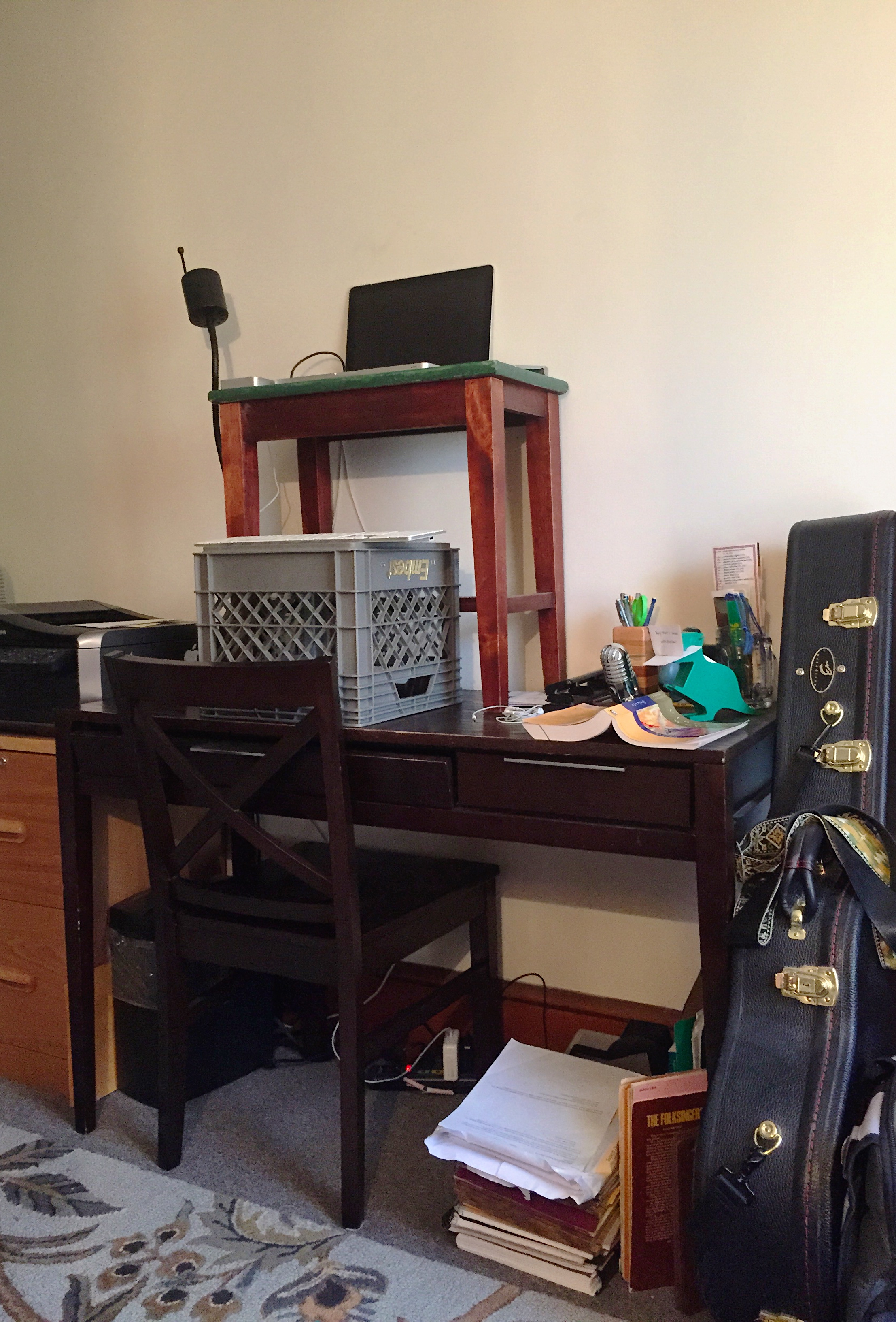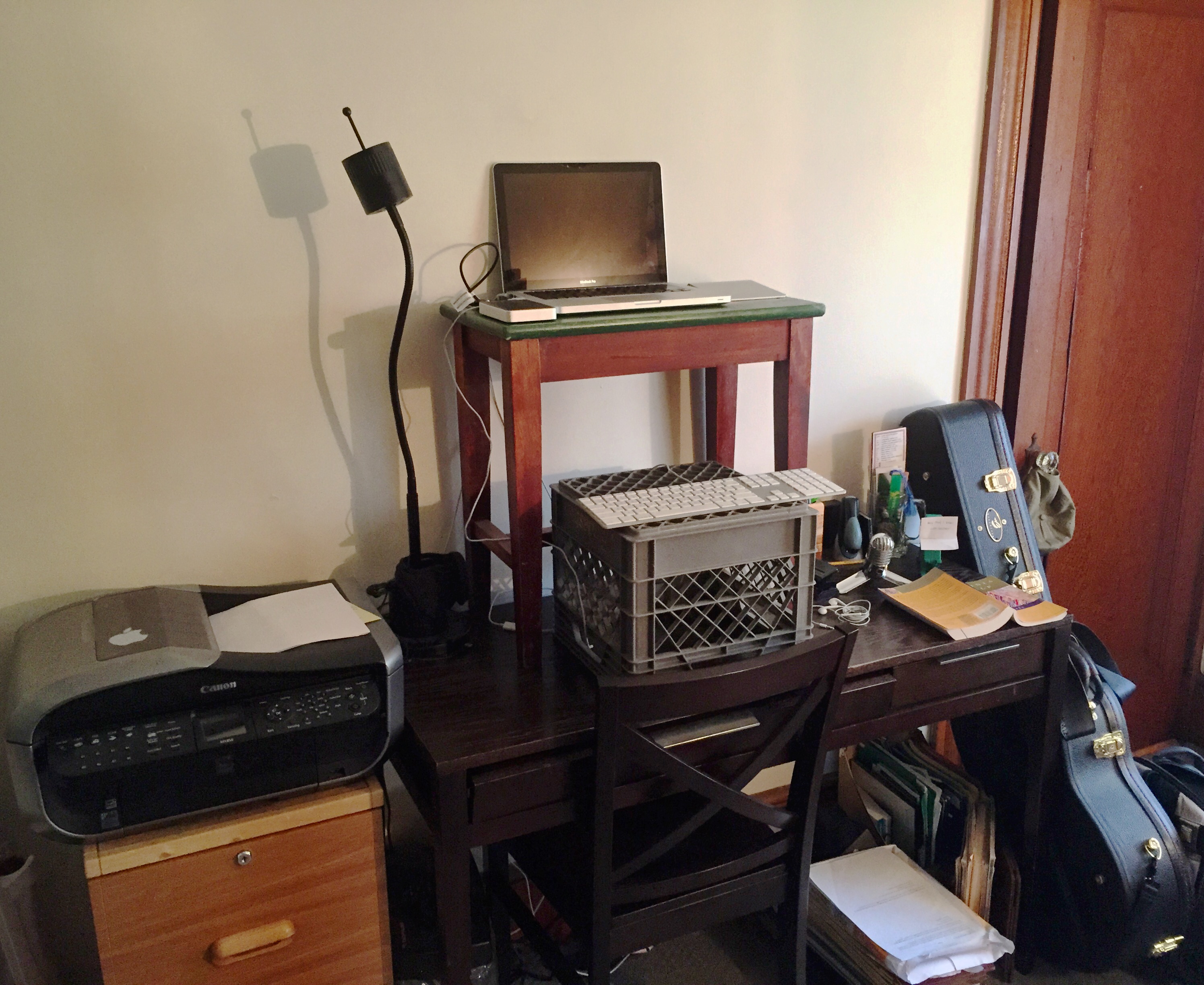 The experiment is still ongoing, but my improvised workstation is working quite nicely, even if it isn’t aesthetically pleasing:
