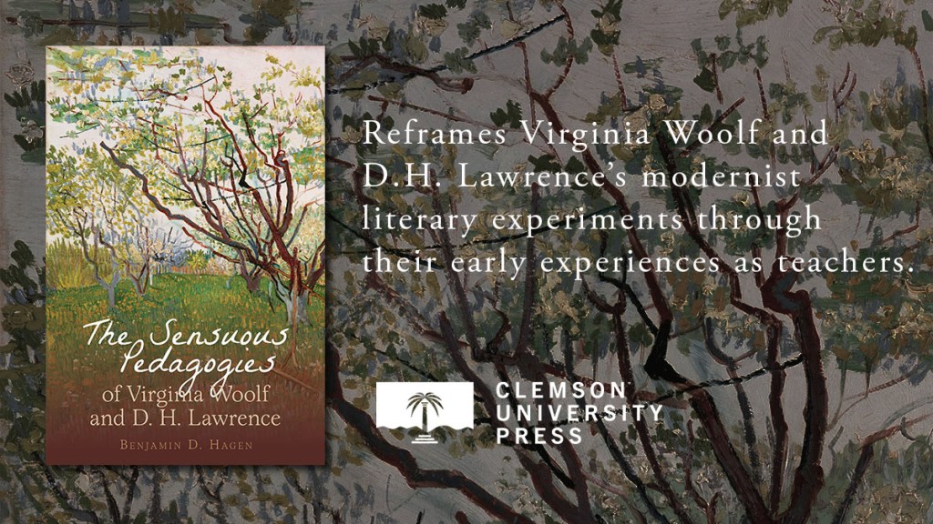 Clemson University Press and Liverpool University Press both announced today that my first contracted book-length study, The Sensuous Pedagogies of Virginia Woolf and D.H. Lawrence, is now available. You can read a description and three flattering endorsements of the study here.
