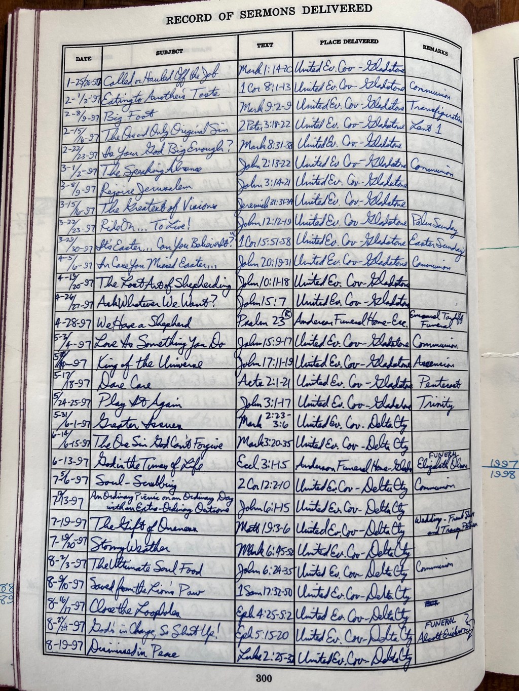 On my favorite days, though, I would head upstairs to see Dad, who had set up for me, in the room adjacent to his office, a chair and a desk on which I’d find a a yellow notepad, some pencils, and a stack of books he had chosen from his office shelves. The stack he’d prepared included tomes from multi-volume Bible commentaries, thick one-volume commentaries (sometimes addressed to lay readers; sometimes to ministers), and occasional thematic studies (e.g., on prayer, holiness, or community). Though he’d sometimes tell me a bit about the books he’d stacked, I was usually eager to get to work in silence. My job was to read, review, and take notes on what had already been said about the scripture passage(s) Dad would be preaching on the following Sunday.